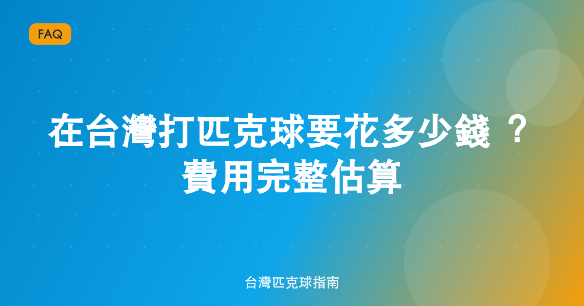 打匹克球是台灣目前成本相對合理的運動。和高爾夫(初始費用動輒 NT$20,000 以上)相比,匹克球的入門門檻低很多。以下逐項說明。