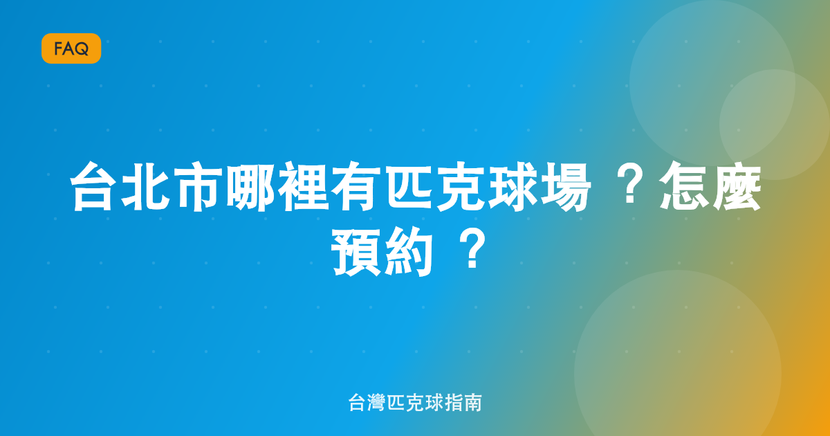 如果你經常往返不同縣市打球,除了台北的場地外,也可以查看我們整理的全台灣匹克球場地完整清單,涵蓋全台室內外熱門打球地點。